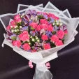 *кустовая роза может быть заменена на одноголовую в розовом или фиолетовом оттенке